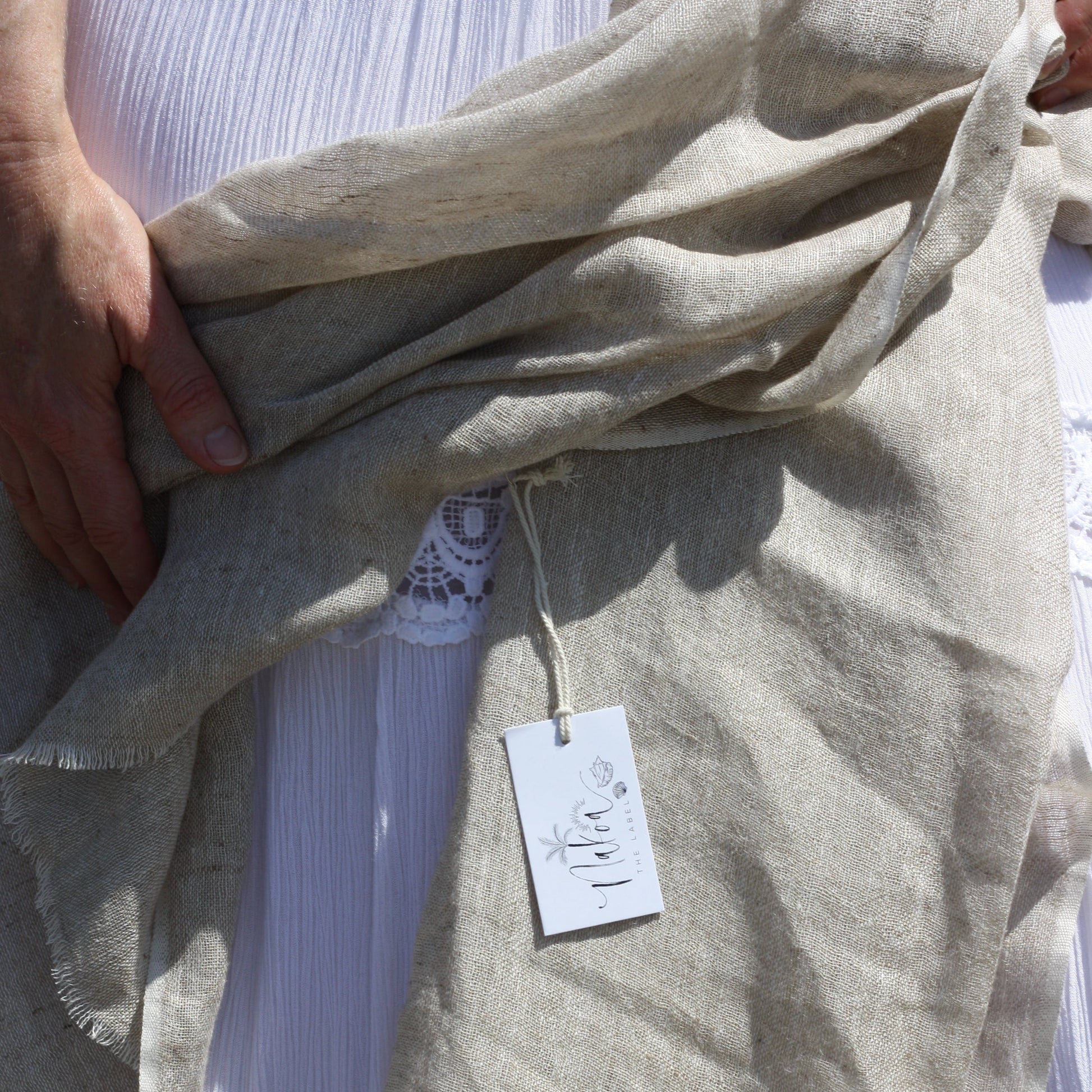 This luxurious soft linen scarf is the must have accessory this season, perfect for wearing on cool summer evenings or when you are travelling. This light weight, textured linen scarf is an essential piece for any wardrobe, adding style and interest to your outfit. I personally love to pair this gorgeous scarf with a white top and jeans or my favourite linen dress. Finished with a frayed edge. by Australian brand Nakoa The Label.